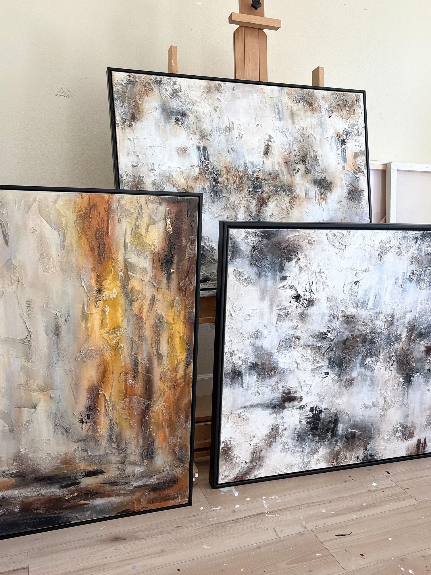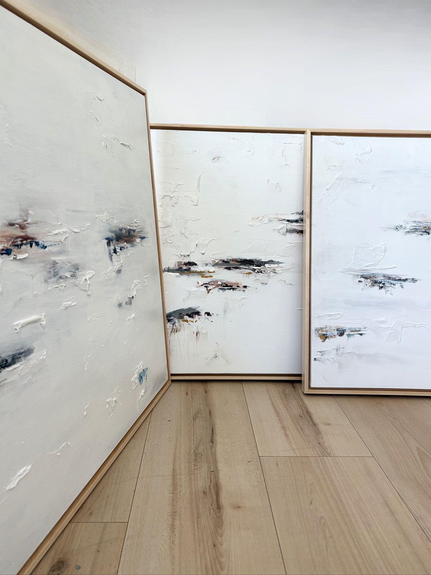 This collection explores the horizon line as both a visual and emotional boundary—one that suggests distance, depth, and the unknown. Through abstraction, the work draws a parallel between the endlessness of the horizon and the depth within each person. Just as the eye moves outward into open space, these pieces invite a deeper way of seeing—beyond surface, into something more expansive, subtle, and felt.