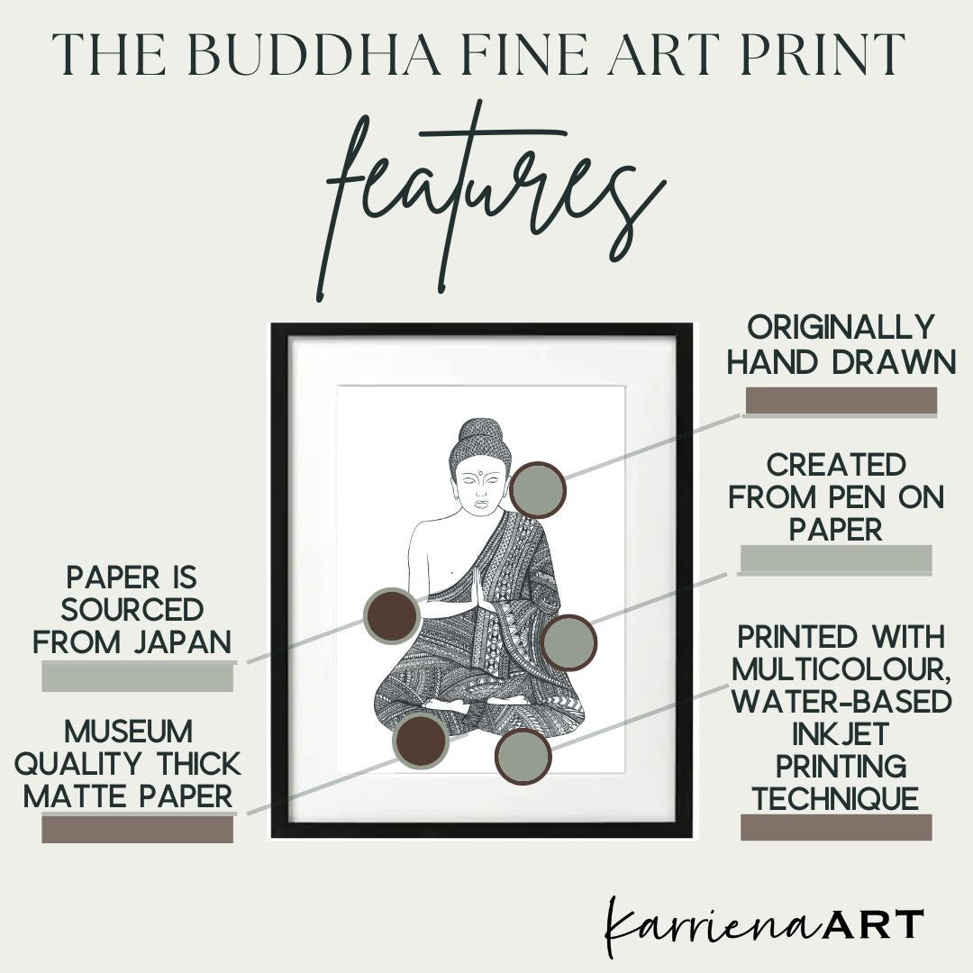 Original Buddha Wall Art Decor Print, Spiritual Art Gifts and Home Decor, Buddha Artwork and Art Gifts, Black & White Drawings with Meaning